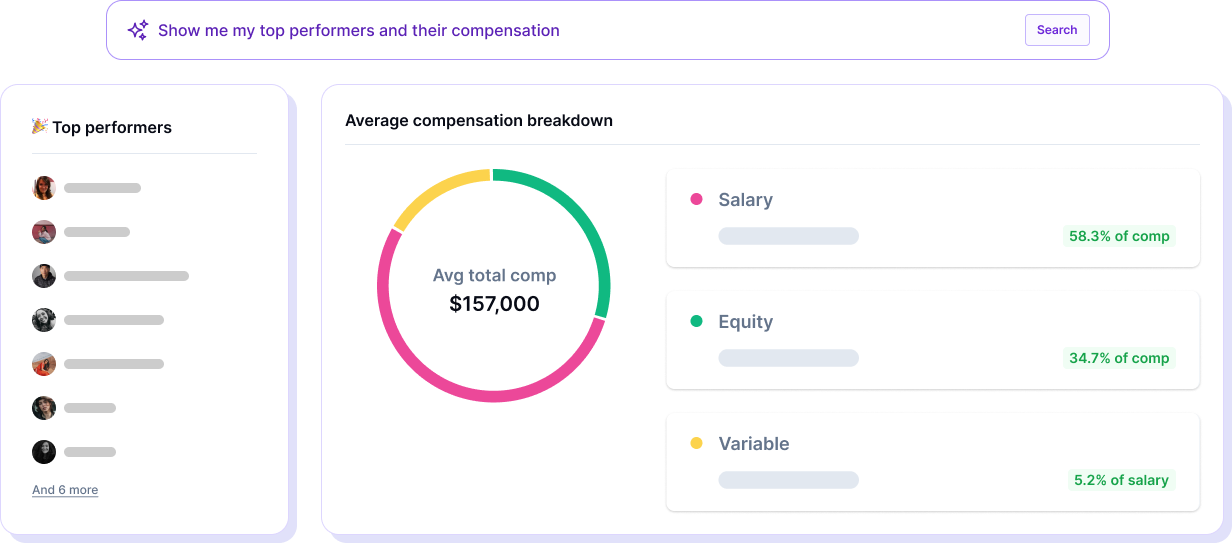 Leverage robust AI-enabled team analytics to understand compensation distribution across roles, levels, and geographies. Dive into pay equity analytics to ensure fairness and compliance, shining a light on potential disparities.