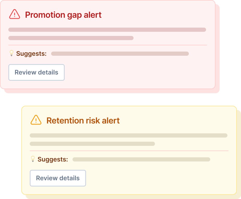 Proactive alerts flag employees at retention risk early, empowering you to take swift, informed action and keep your best talent on board.